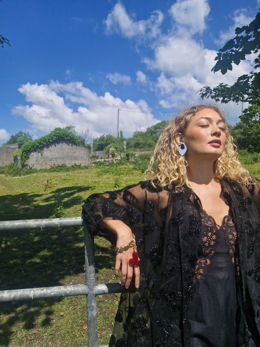 Introducing the new eve ray collection - Vintage Love. This new collection is inspired by designer, Maeve Barry's love of vintage costume jewellery and inspired by family and friends who shaped that obsession. The 'Bee' earrings are inspired by Maeve's grandaunt 'Bee', who's love for costume jewellery and pearls brought glamour to every family gathering. These earrings are as big as her personality!