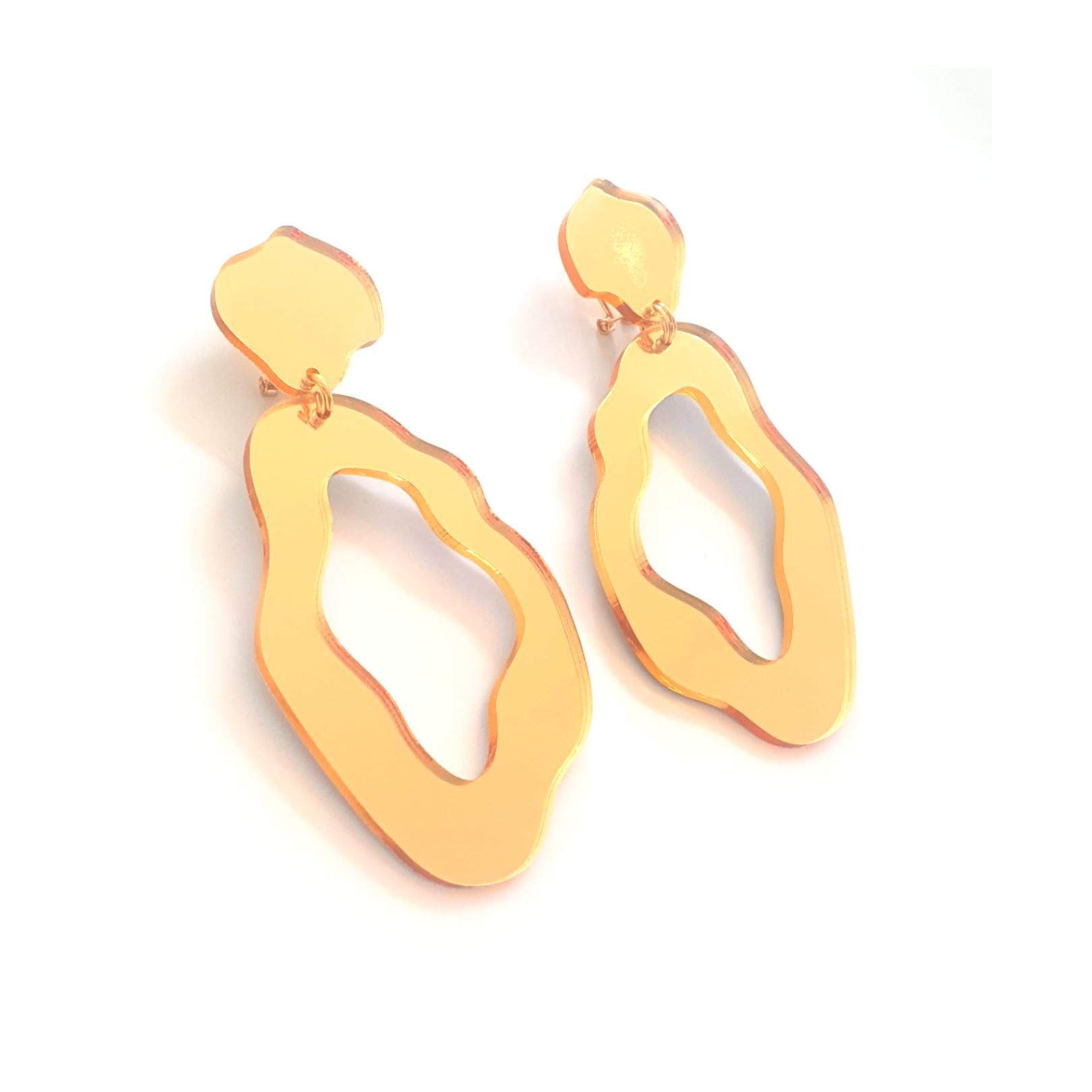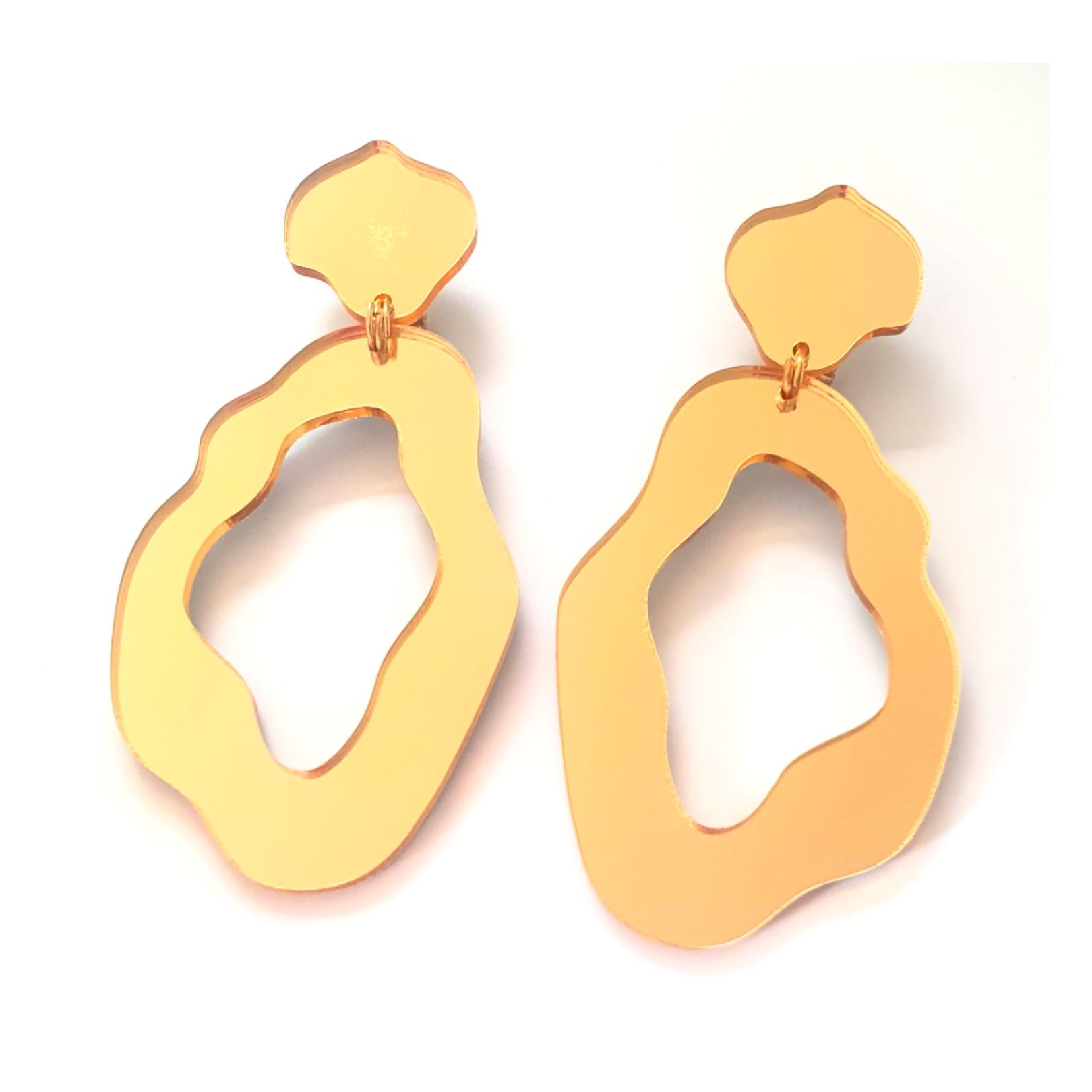 eve ray 'the garden 1925' mirror perspex drop earrings in six colour options. Inspired by Joan Miro's painting The Garden 1925. Maeve Barry designs fun, unique costume jewellery that puts a twist on traditional symbols and takes inspiration from art, Ireland and her childhood.